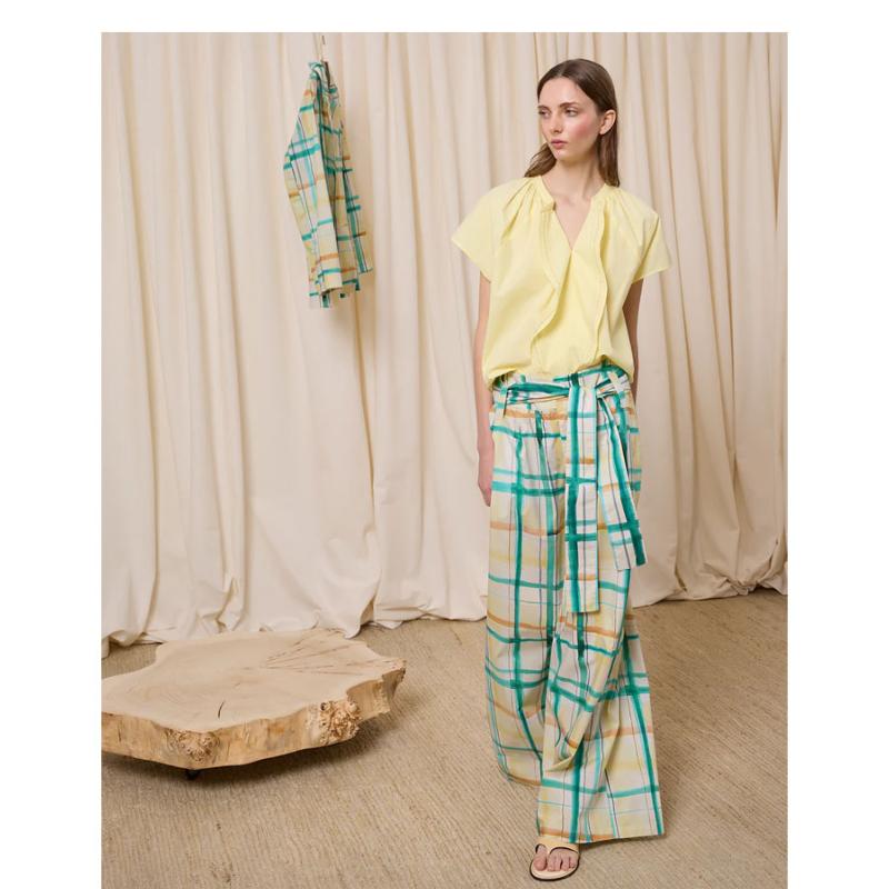 IS COMING - Pantalon large à rayures jaune